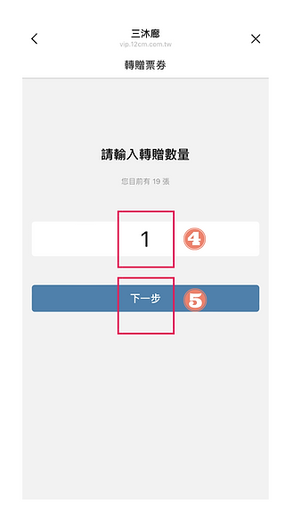 3. 輸入轉贈數量 => 下一步 => 出現Line好友名單,搜尋並選擇名單內想贈送的好友帳號